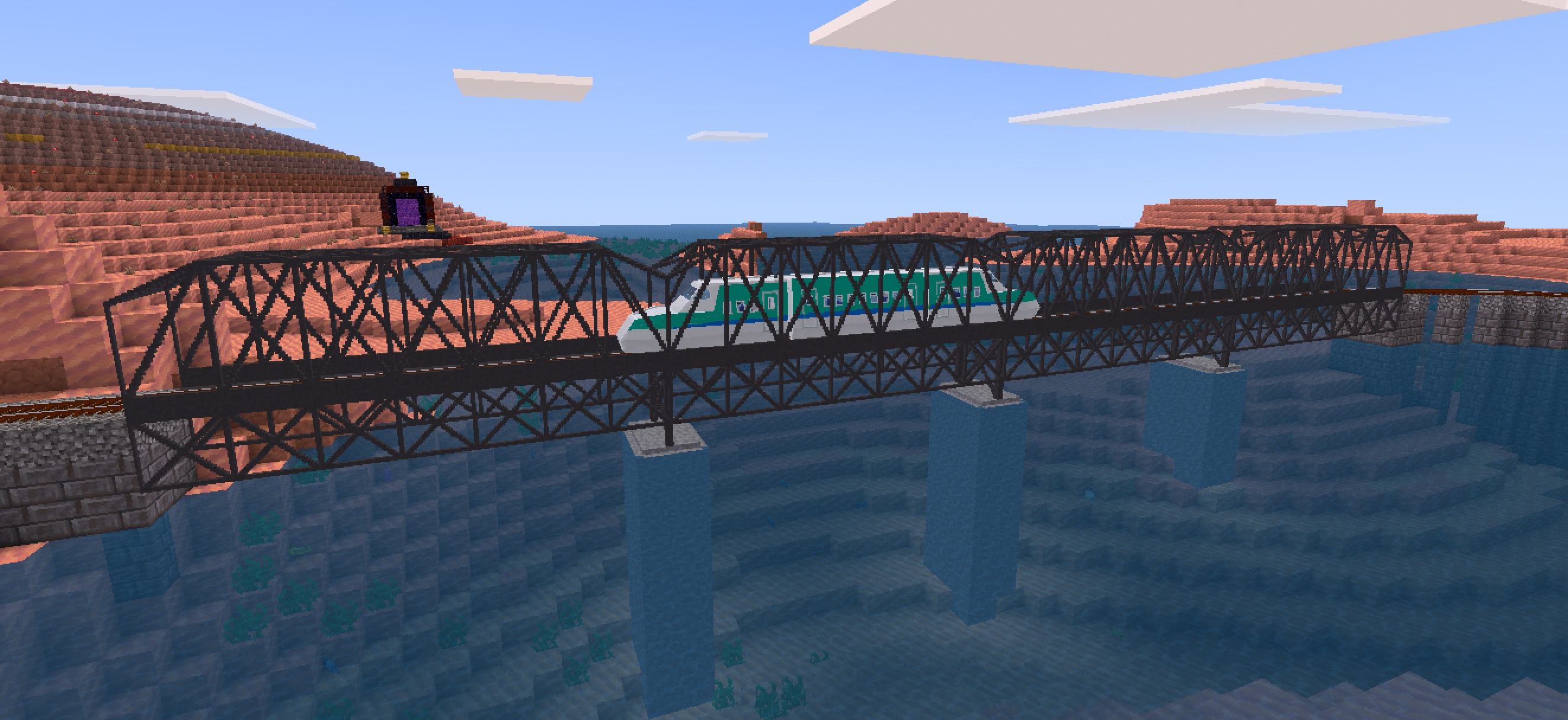 vlbridger screenshot of a truss bridge in VoxeLibre